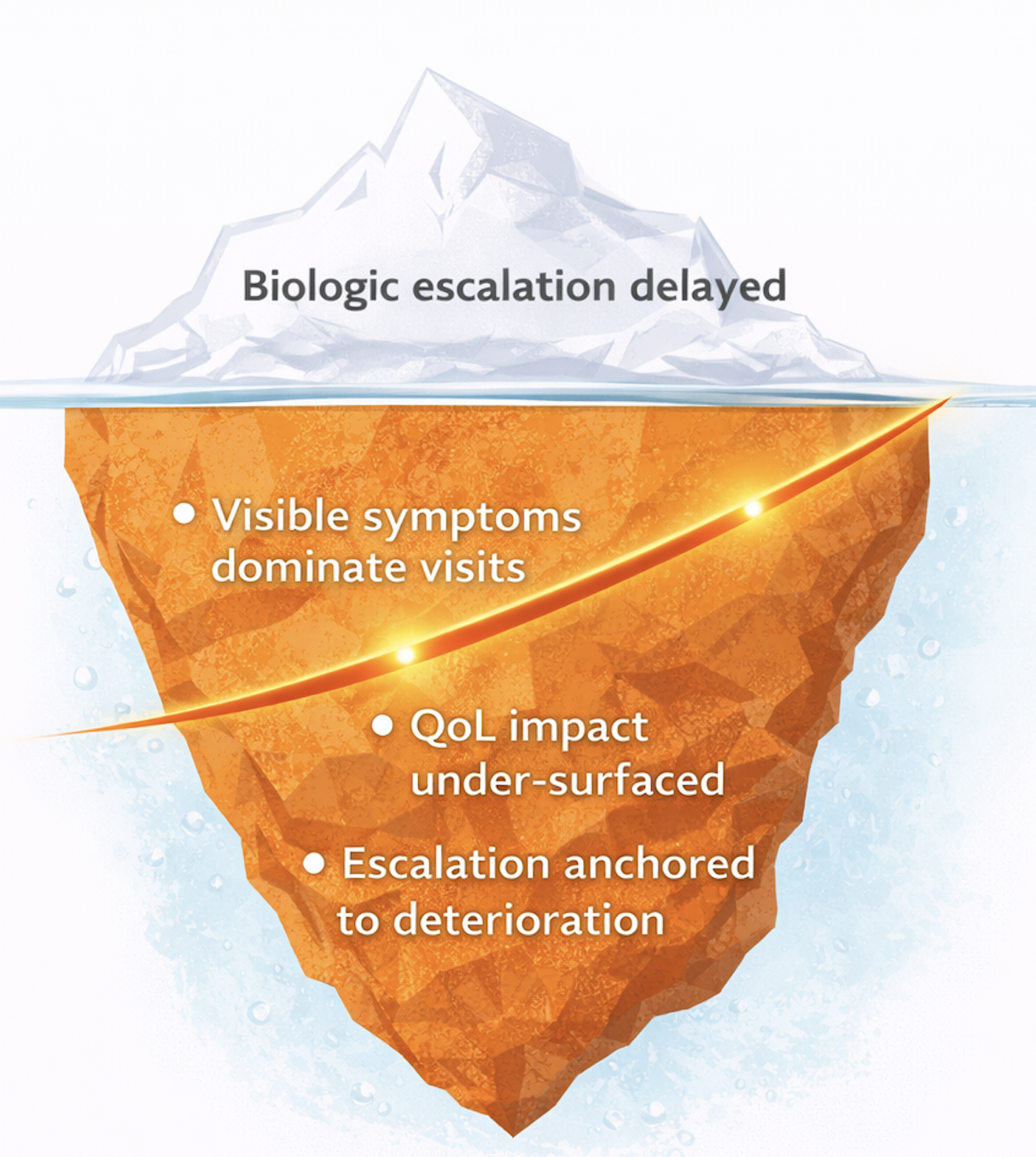 Escalation to biologic therapy occurs later than clinically appropriate.